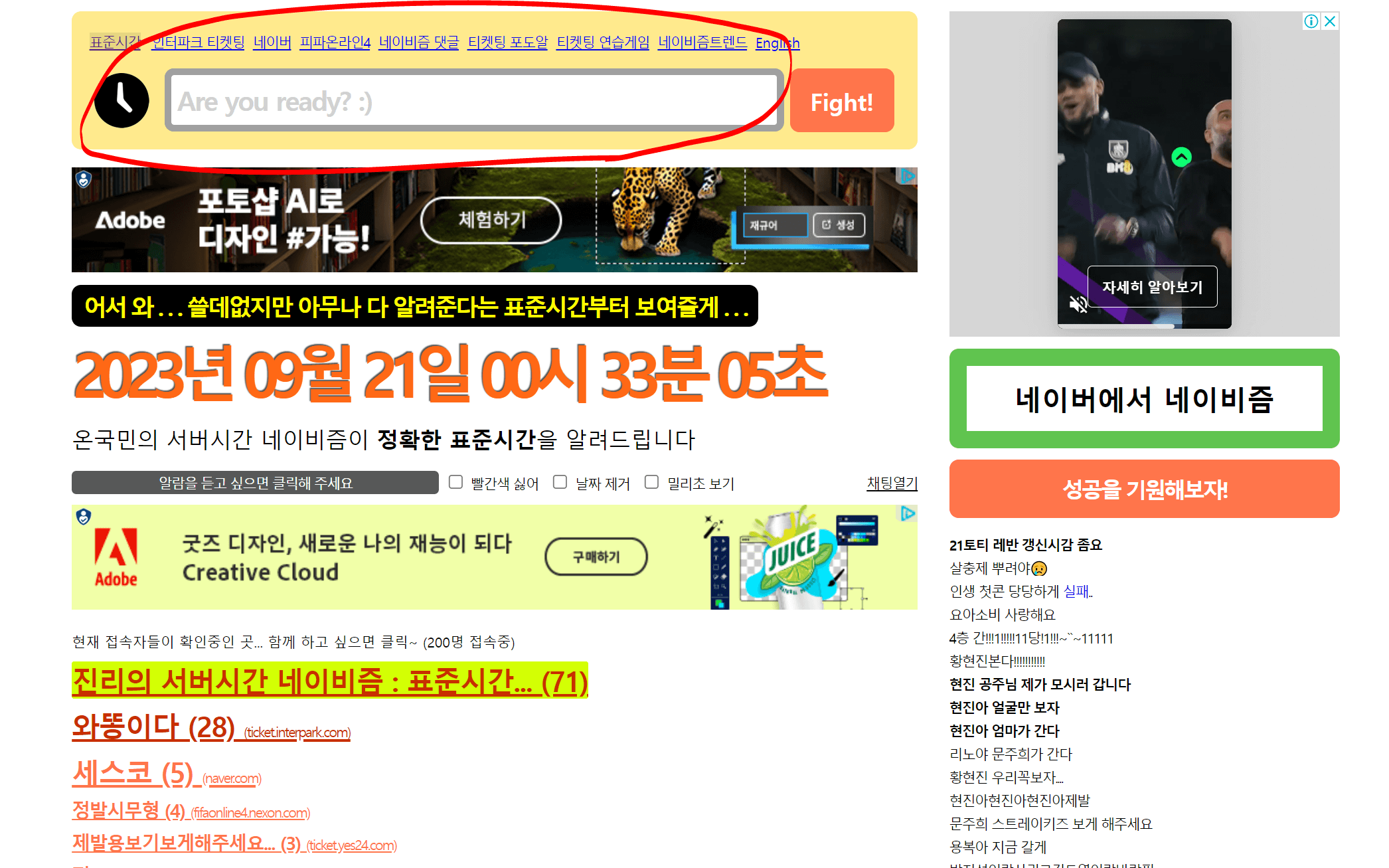 우선 서버 시간을 정확히 맞춰야 합니다. 각각의 서버에서 사용하는 시간이 조금씩 차이가 날 수 있습니다. 서버의 시간을 완벽하게 알기 위해서는 네이비즘이라는 사이트를 이용합니다. 네이비즘 사이트에서 티켓팅 링크를 넣으면 초단위의 시간까지 볼 수있습니다. 따라서 초단위의 시간을 띄워놓고 원하는 알람 시간을 체크하여 대기하도록 합니다.